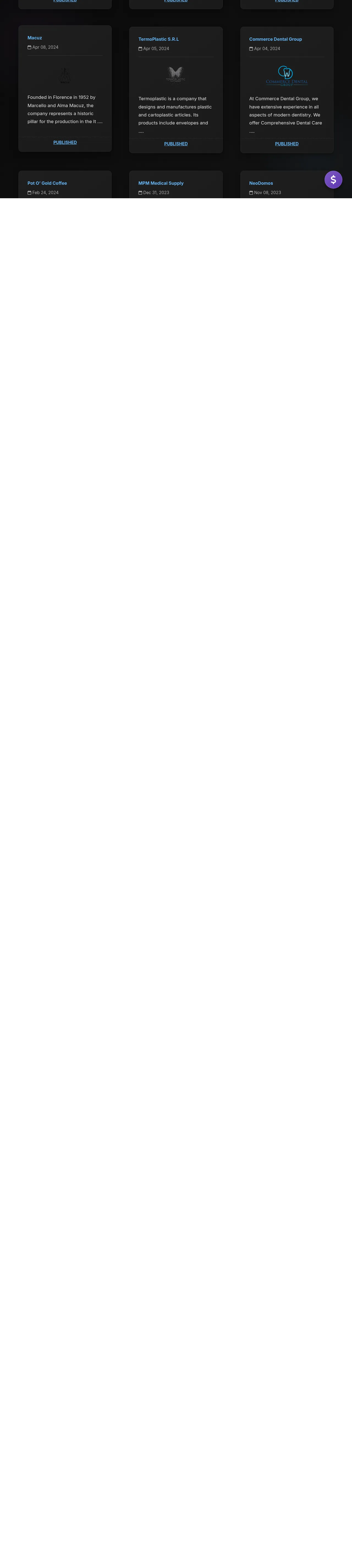 | 2024-04-06 | TermoPlastic S.R.L | Termoplastic is a company that designs and manufactures plastic and cartoplastic articles. Its products include envelopes and pockets, cases, exhibitors, folders, name badges, key rings, and more. The company also offers design, engineering, installation, delivery, prototyping, and fittings services. Termoplastic caters to automotive, communication, pharmaceutical, telephony, and other sectors.Since the year 1951, we have been dedicated to the design and production of plastic items. Over the course of 70 years of activity, we have expanded our research and innovation sector, paying particular attention to the evolution of materials.At the moment, we are a solidly structured company, capable of managing each project in all its phases: customer consultancy, creation of the prototype and creation of the finished product, with a focus on cost optimization without neglecting creativity and functionality. Over time, we have collaborated with the most prestigious Italian companies, who have appreciated our finished product and our ability to combine quality and costs | |