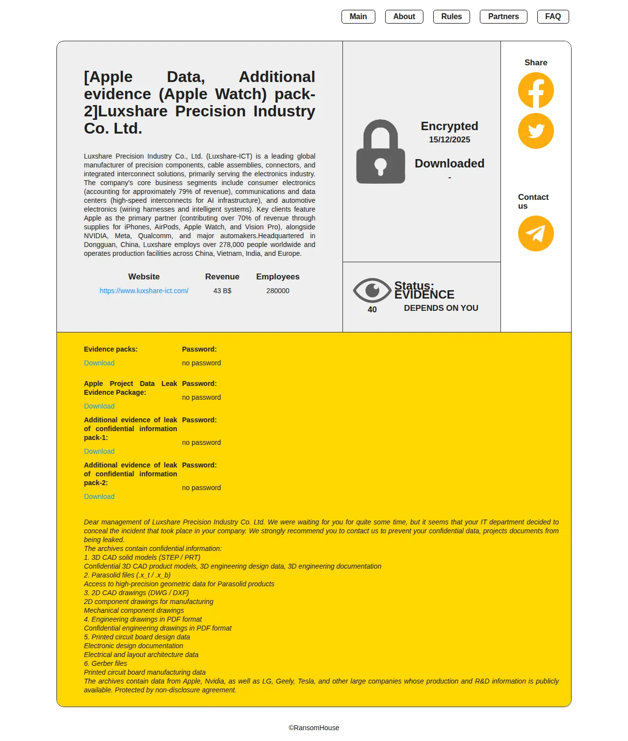 [Apple Data, Additional evidence (Apple Watch) pack-2]Luxshare Precision Industry Co. Ltd. [Ransomhouse] - China