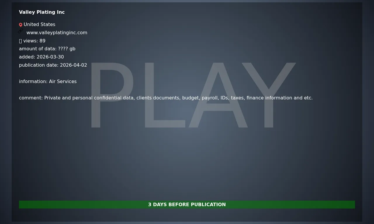 2026-03-30 Valley Plating Inc image