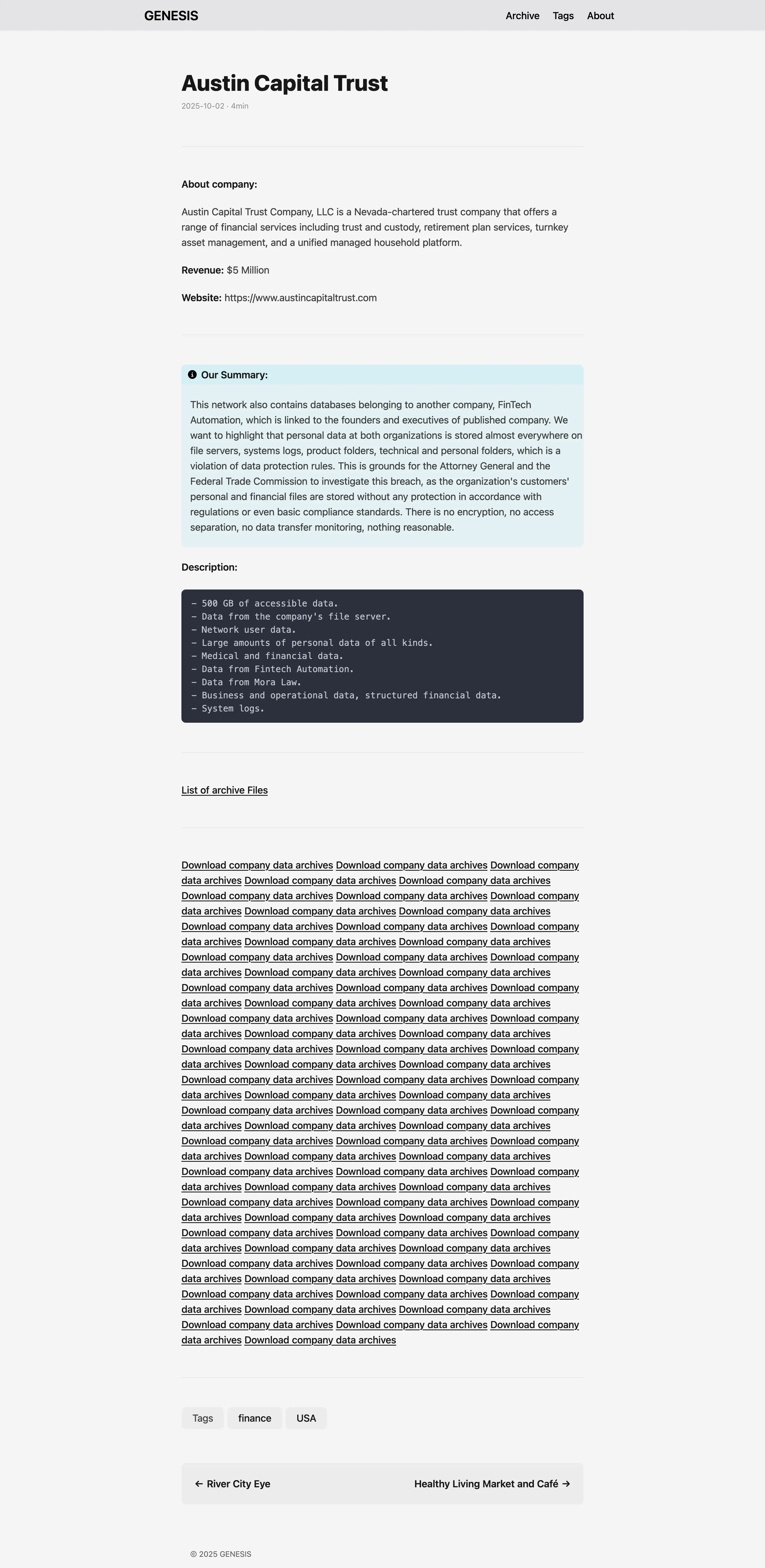 Austin Capital Trust Company, LLC is a Nevada-chartered trust company that offers a range of financial services including trust and custody, retirement plan services, turnkey asset management, and a unified managed household platform.