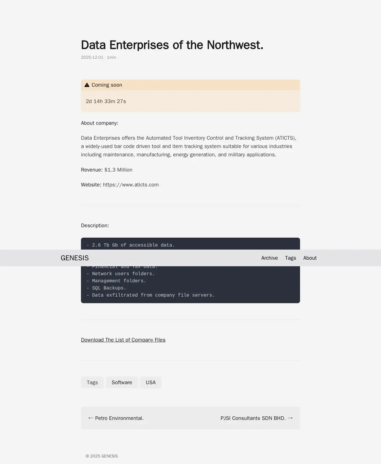 This company was notified through 5 various channels with evidence of the network breach. Yet each time, its representatives claimed that they had not received any messages, which is a lie. Given the quality of the data we have, we strongly recommend filing a complaint with the New York State Attorney General's Office and preparing for a class action lawsuit on behalf of customers whose data this company cared so little about that it did not even contact them to fully validate the leak. All customer and contractor contacts will be provided here shortly. In the meantime, you can explore the data tree to check the list of files we have. |