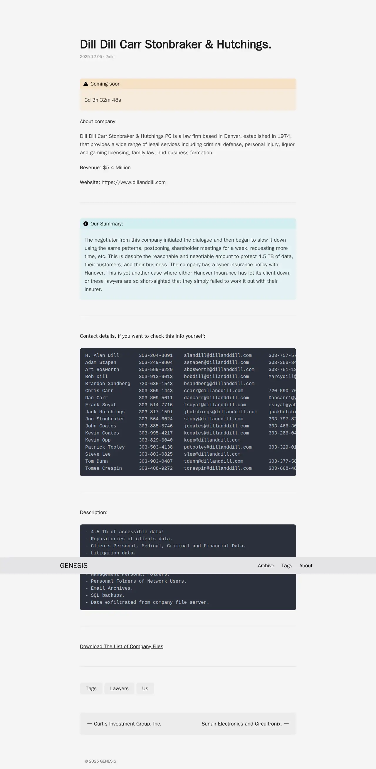 This network also contains databases belonging to another company, FinTech Automation, which is linked to the founders and executives of published company. We want to highlight that personal data at both organizations is stored almost everywhere on file servers, systems logs, product folders, technical and personal folders, which is a violation of data protection rules. This is grounds for the Attorney General and the Federal Trade Commission to investigate this breach, as the organization's customers' personal and financial files are stored without any protection in accordance with regulations or even basic compliance standards. There is no encryption, no access separation, no data transfer monitoring, nothing reasonable.