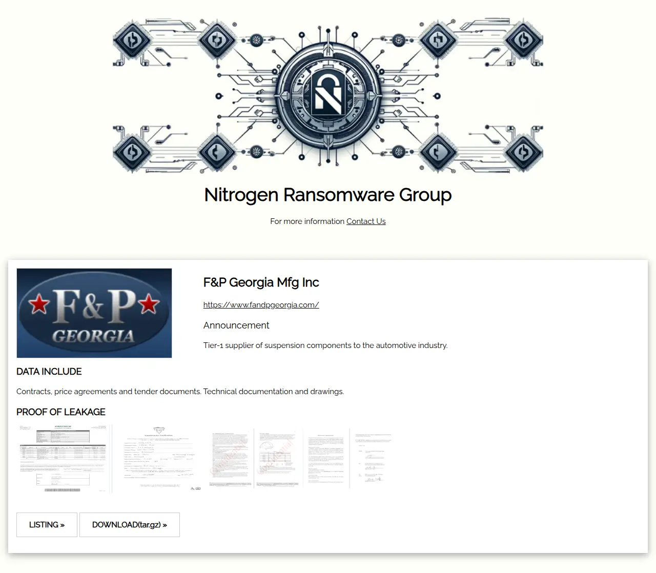 Tier-1 supplier of suspension components to the automotive industry. |