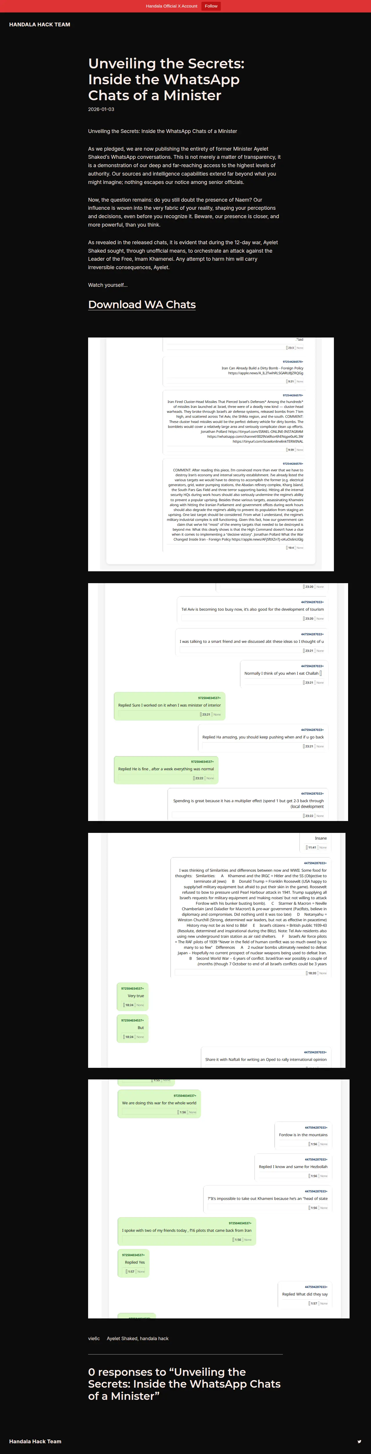 Unveiling the Secrets: Inside the WhatsApp Chats of a Minister [Handala] -